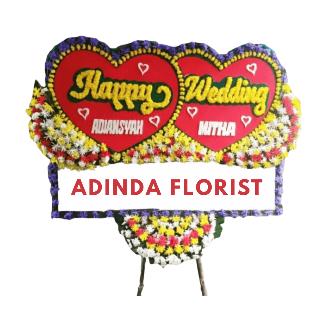 Karangan Bunga Papan Dahatsu adalah persembahan ucapan selamat pernikahan yang sangat romantis, unik, dan dirancang untuk menonjolkan simbol cinta secara eksplisit. Papan bunga ini memiliki desain berbentuk dua hati yang saling bertautan, menjadikannya statement publik yang memancarkan gairah, komitmen, dan kebahagiaan yang mendalam, menonjolkan kombinasi warna merah, kuning, dan ungu/biru tua yang sangat festive.